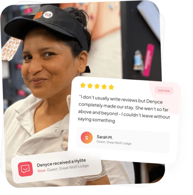 When a customer submits a Hylite, the message is screened to ensure it is positive and workplace-appropriate, then delivered instantly to the employee via text or email. Managers also have real-time visibility, allowing them to recognize and reinforce great performance.