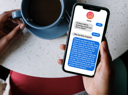 Hylite is incredibly easy to use: all you need to do is send a text. No account, no verification-- you don’t even have to scratch your head to figure out if the service was 4 or 4.5 stars. Name the employee you want to Hylite, and then drop a compliment. It’s that easy! With Hylite’s simplicity and ease of access, it’s no wonder that most businesses see over ten times as many Hylites as Yelp reviews.